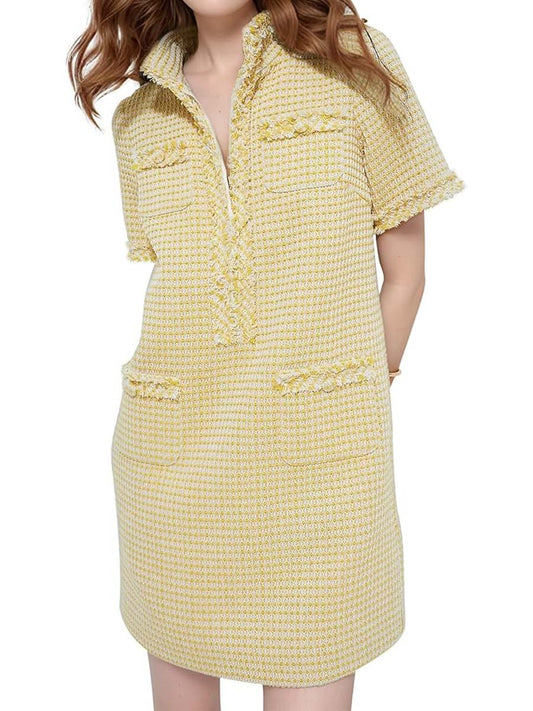 Demure Tweed Dress With Zipper Pockets