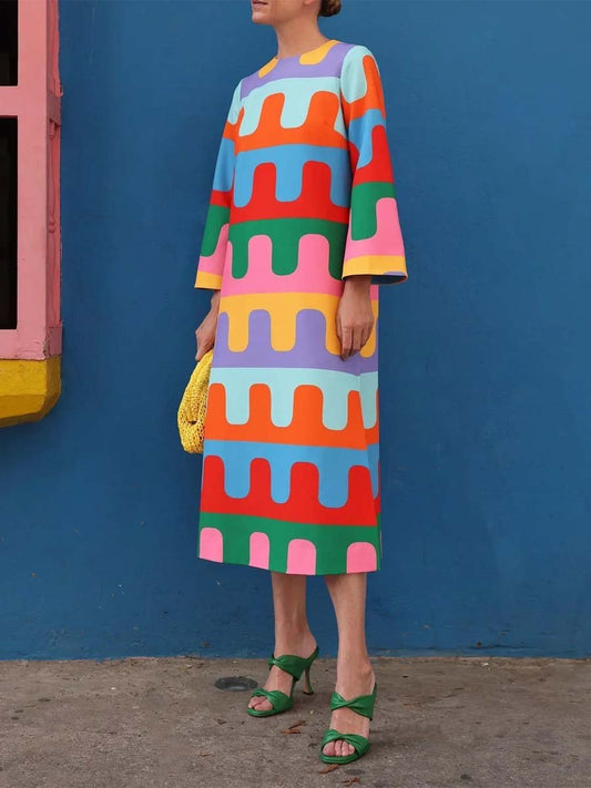 Rainbow Printed Split Midi Dress