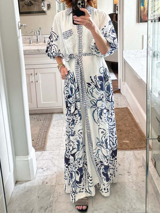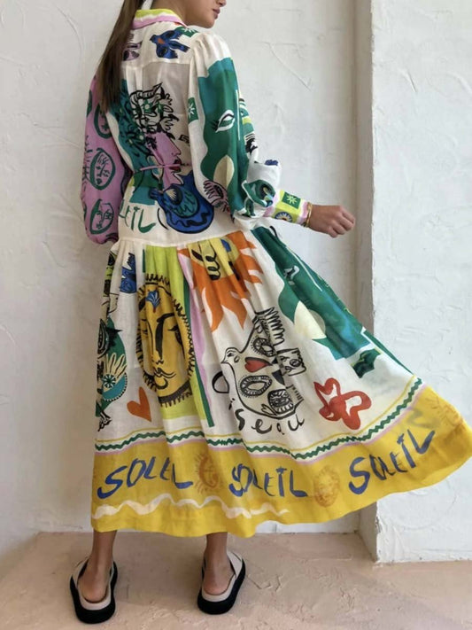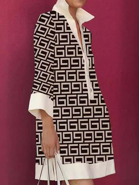 Loose Shirt Collar Print Contrast Dress