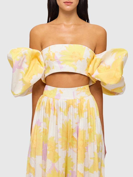 Printed Puff Sleeve Top Skirt Set
