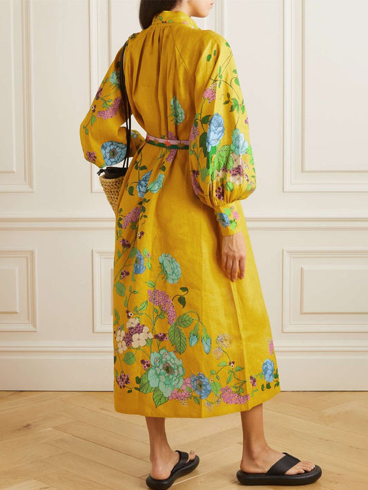 Belted Floral-print Dress