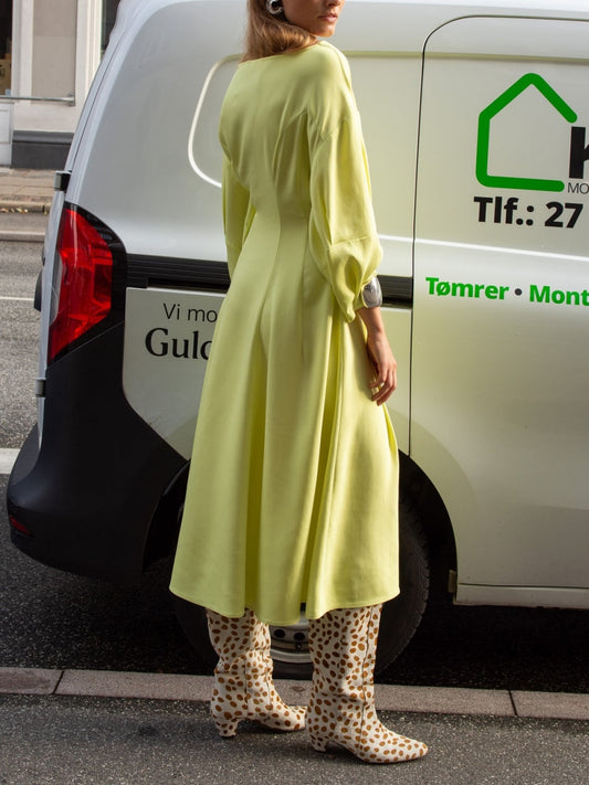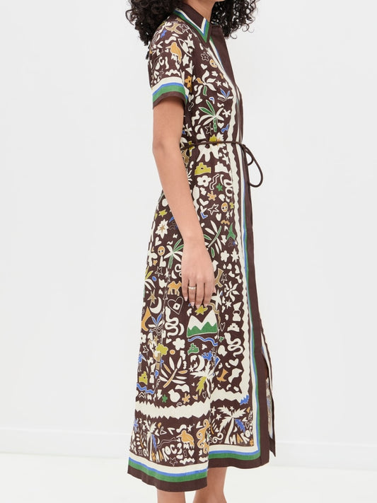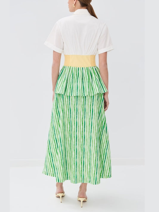 Gold Buttons Contrast Trims Dropped Waist Dress