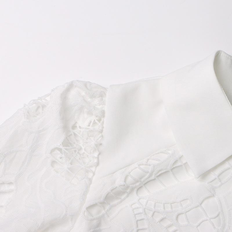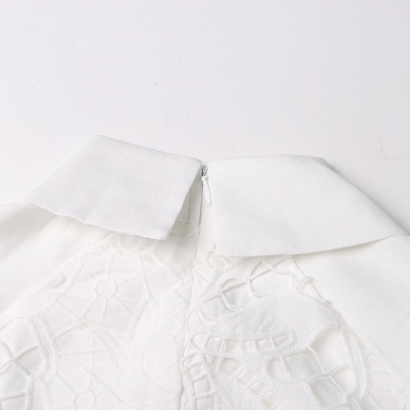 Stand Collar Long Sleeve Suspender Lined Mesh Hollow Dress